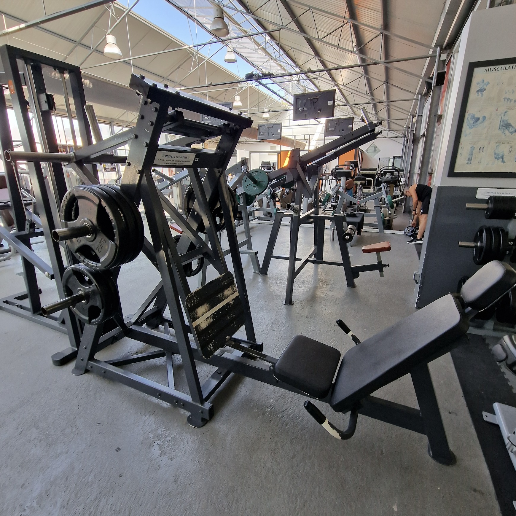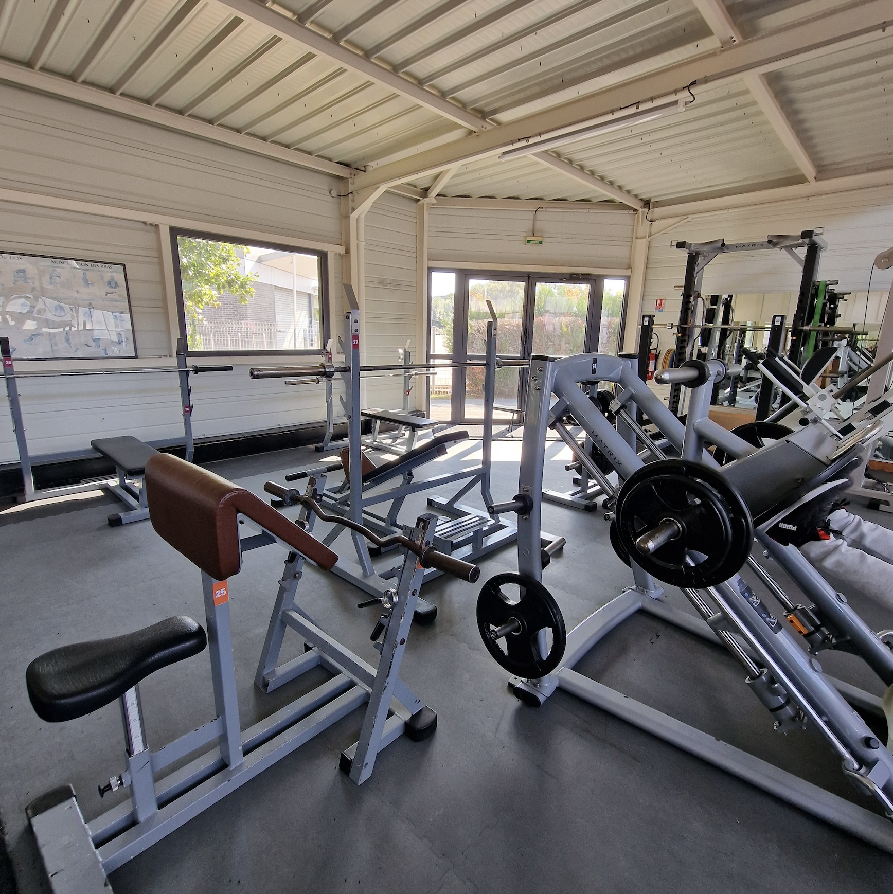 Un espace complet dédié au renforcement musculaire et à la progression. La salle est équipée de machines guidées à charges ajustables ainsi que de machines à charge libre, permettant un entraînement sécurisé et efficace. Vous y trouverez également des barres, des poids libres et des haltères allant de 1 à 50 kg, pour répondre aux besoins des débutants comme des sportifs confirmés.